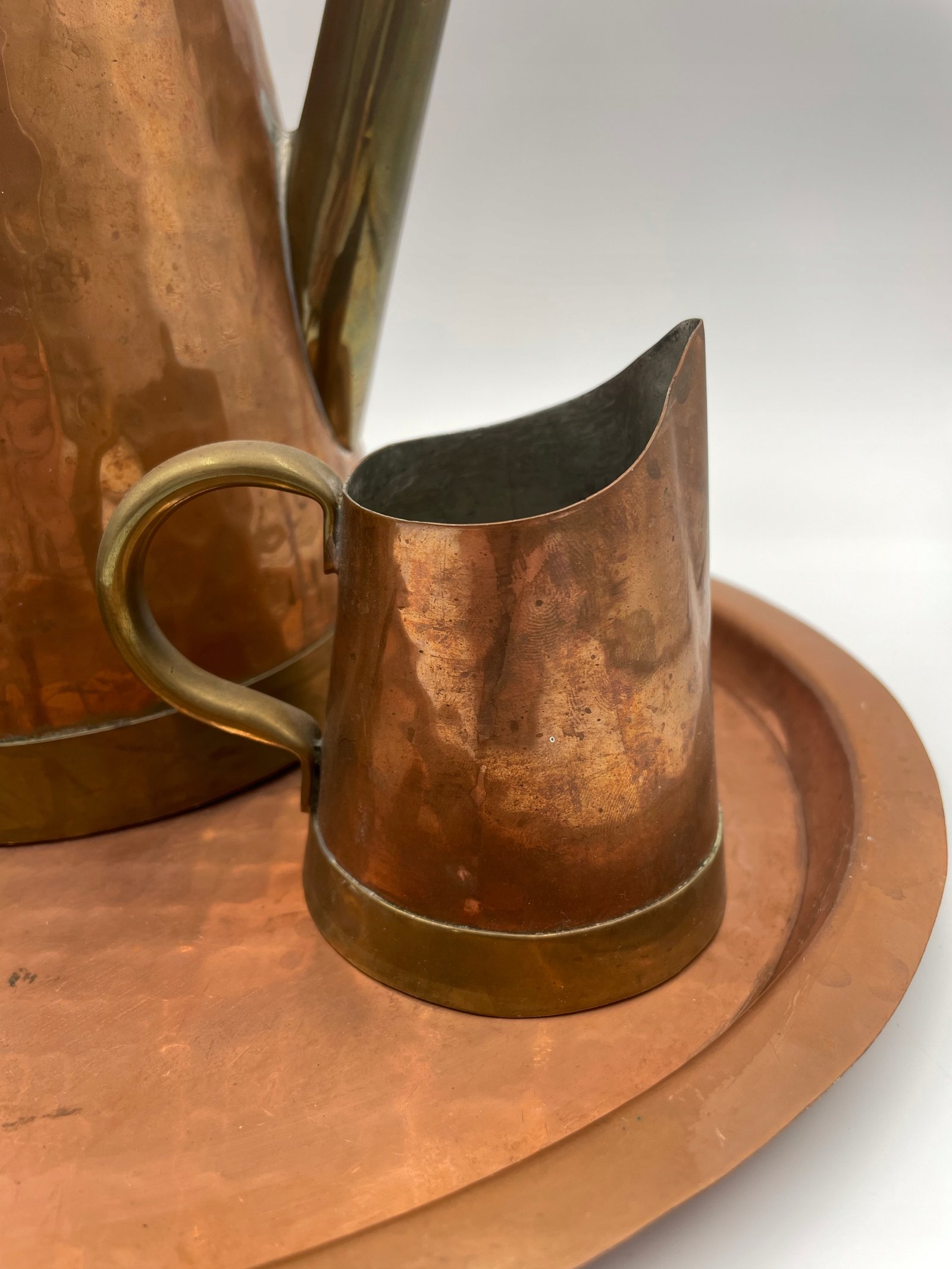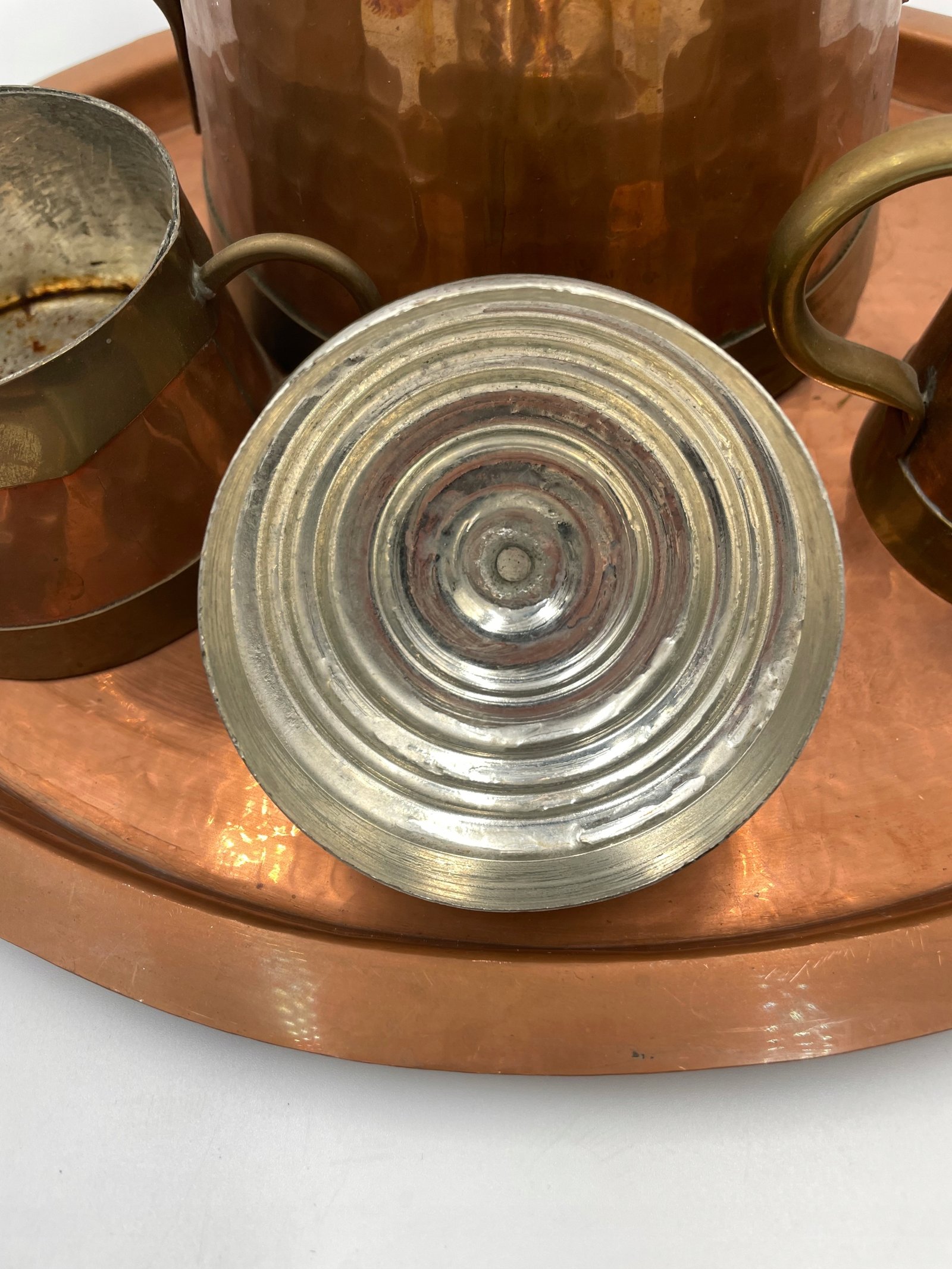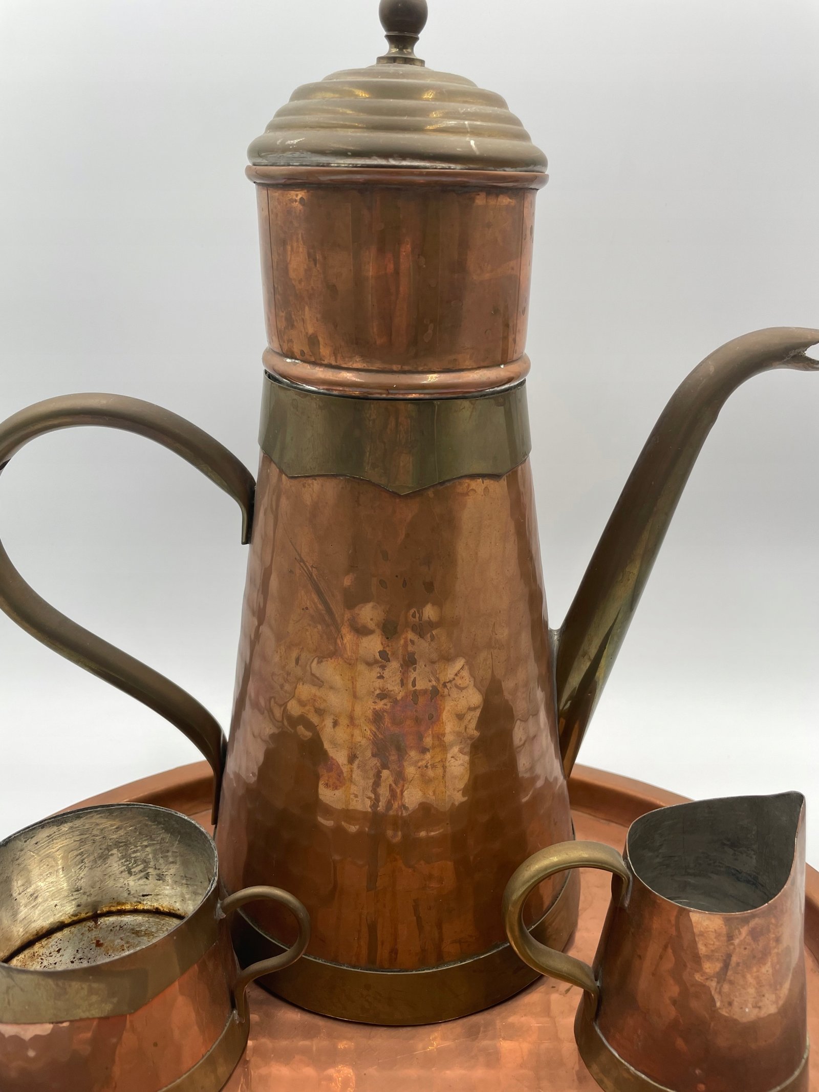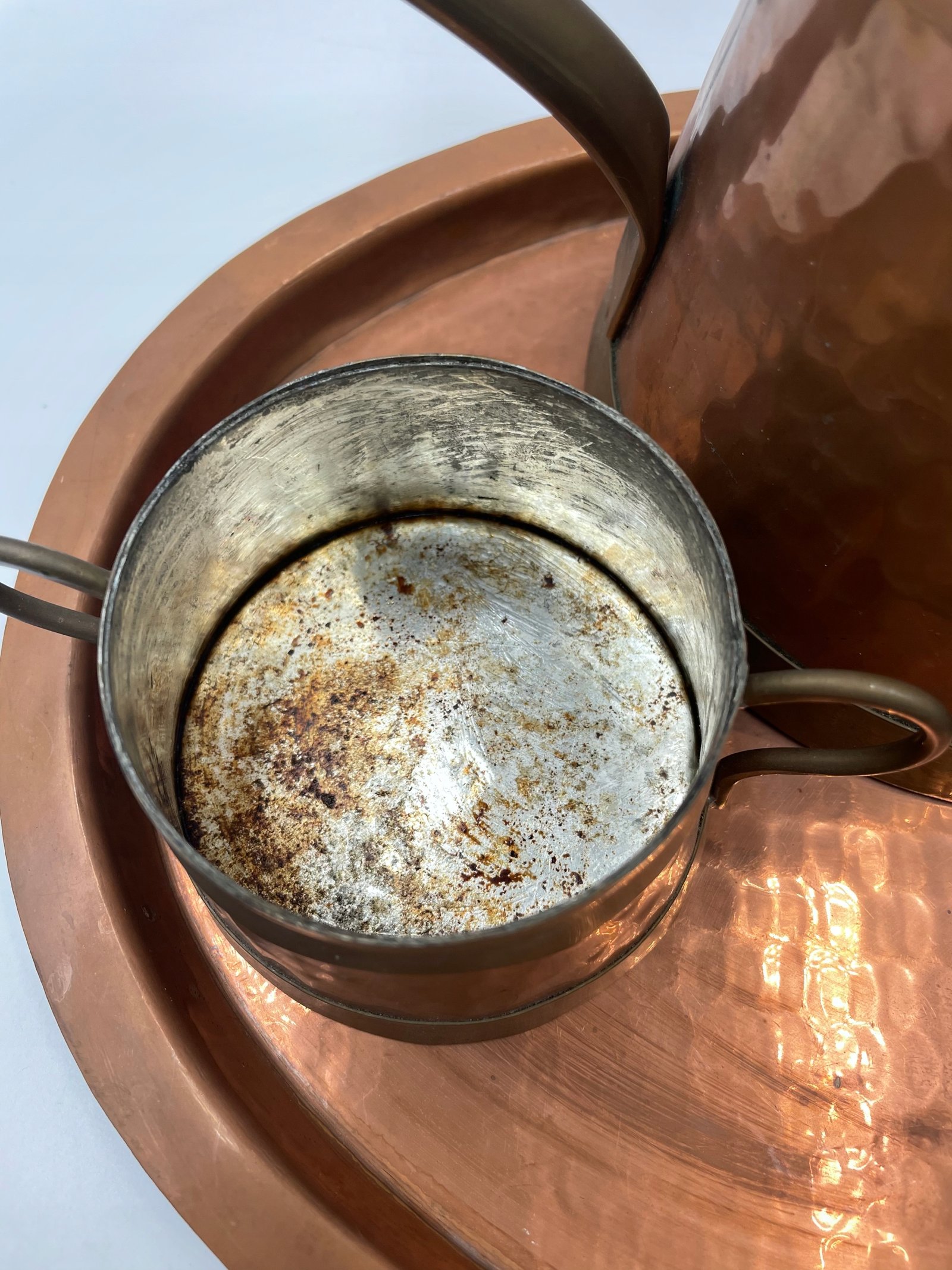 Zestaw do herbaty dekoracyjny miedziany na tacy