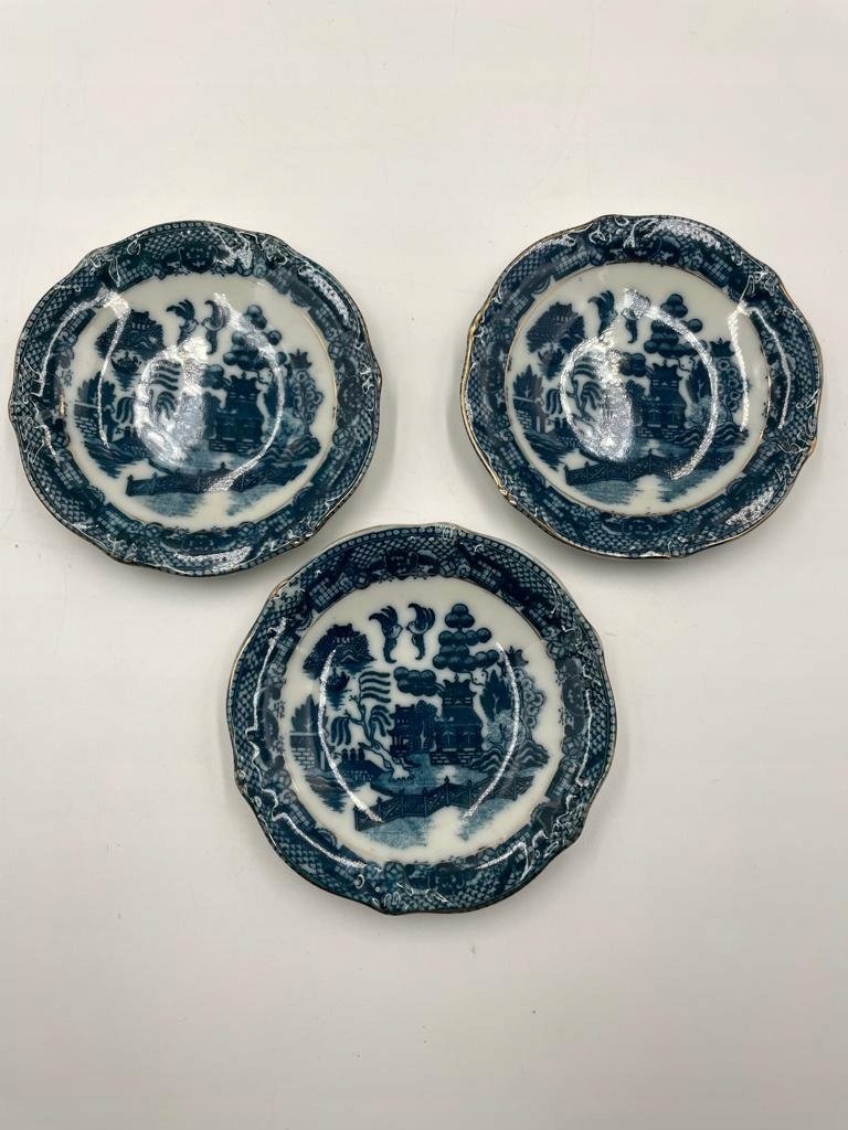 Zestaw 3 antycznych angielskich talerzy porcelanowych