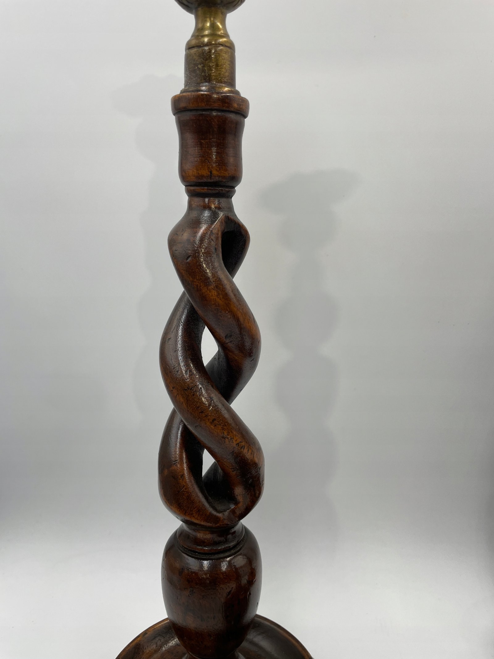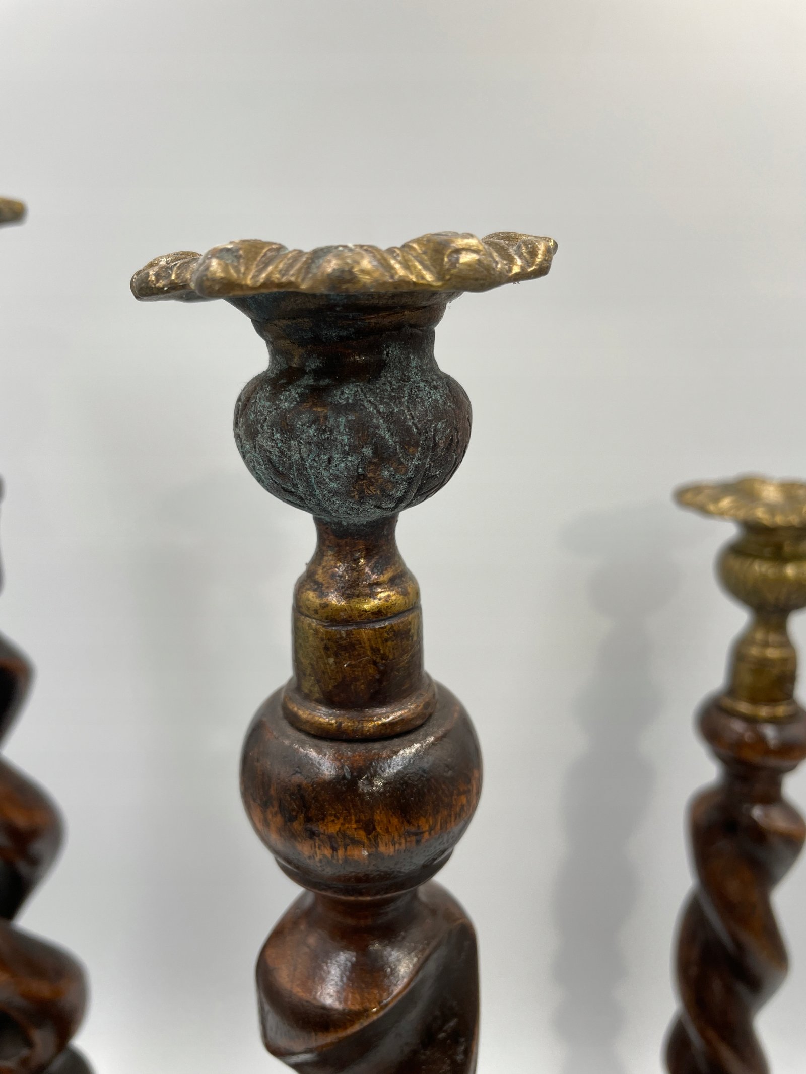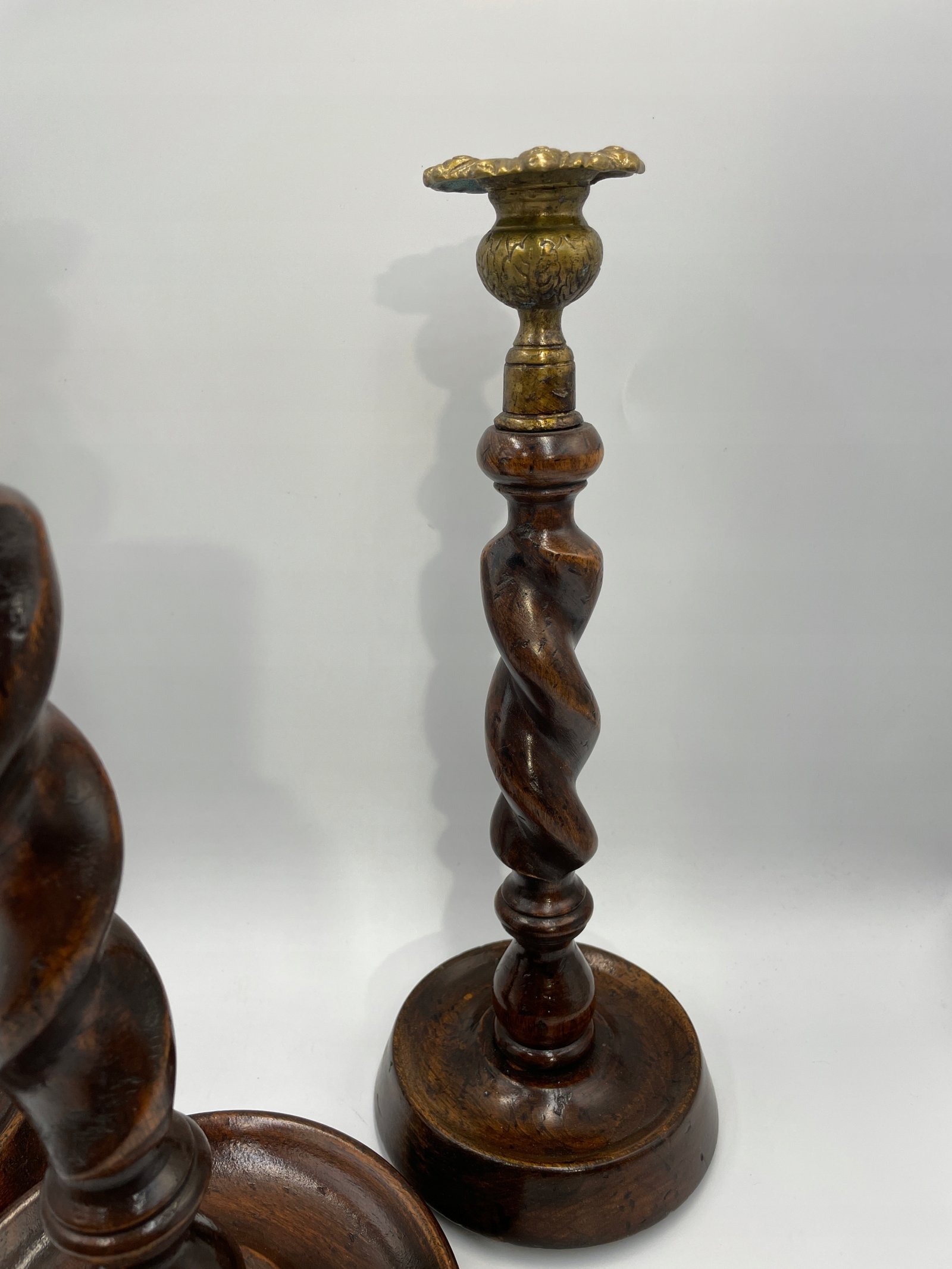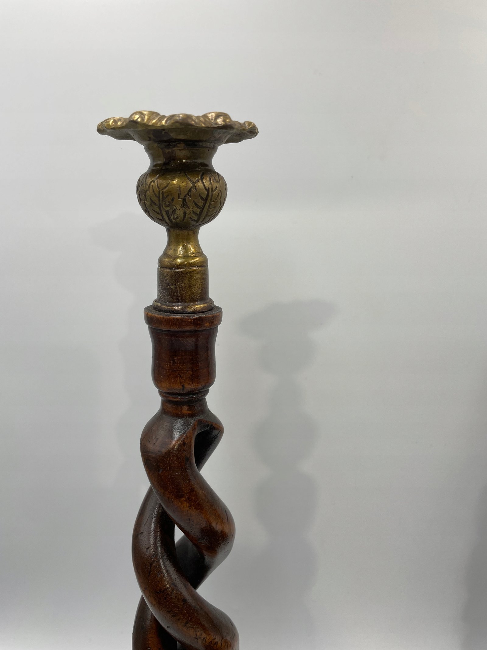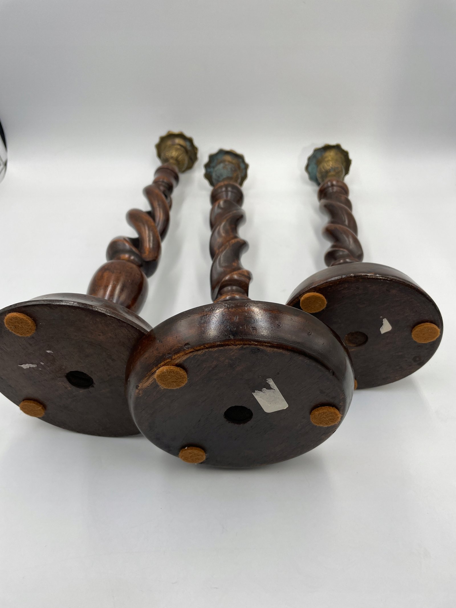 Elegancki zestaw trzech spiralnych świeczników w stylu angielskim będzie efektownym akcentem w każdym wnętrzu. Każdy egzemplarz wykonany jest z ciemnego, polerowanego drewna i posiada dekoracyjne, mosiężne uchwyty na świece, które dodają całości wyrafinowanego charakteru. Spiralna forma trzonów podkreśla kunszt rzeźbienia, a różne wysokości tworzą harmonijny komplet na kominku, stole jadalnym lub w salonie.