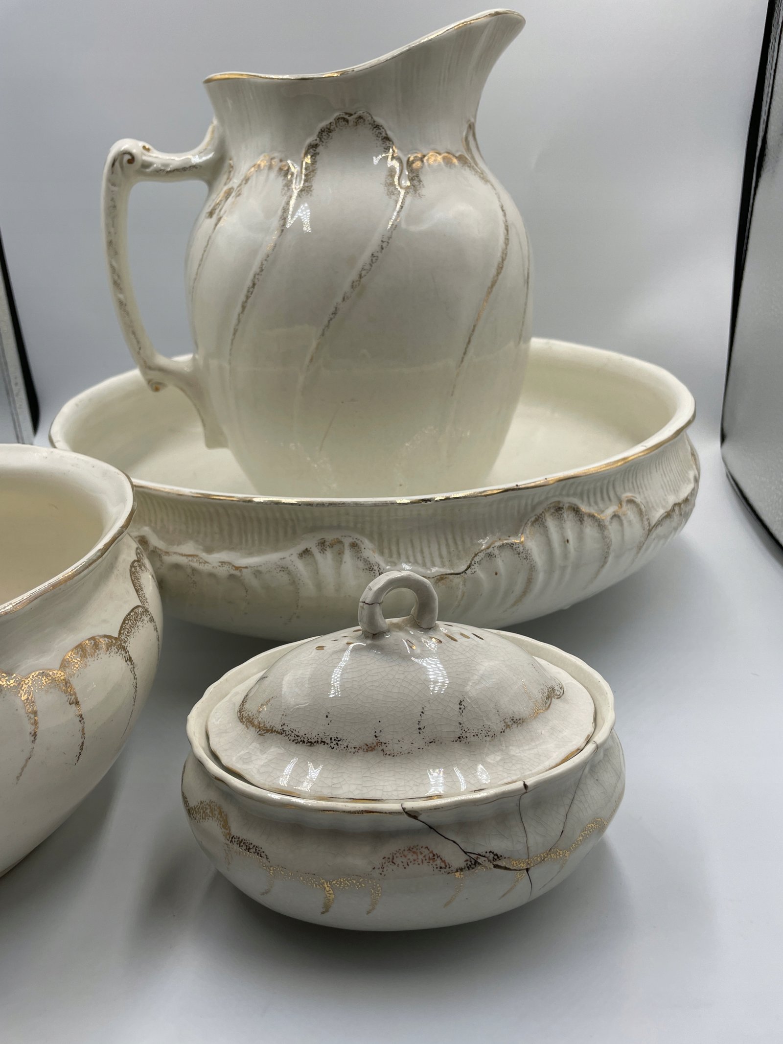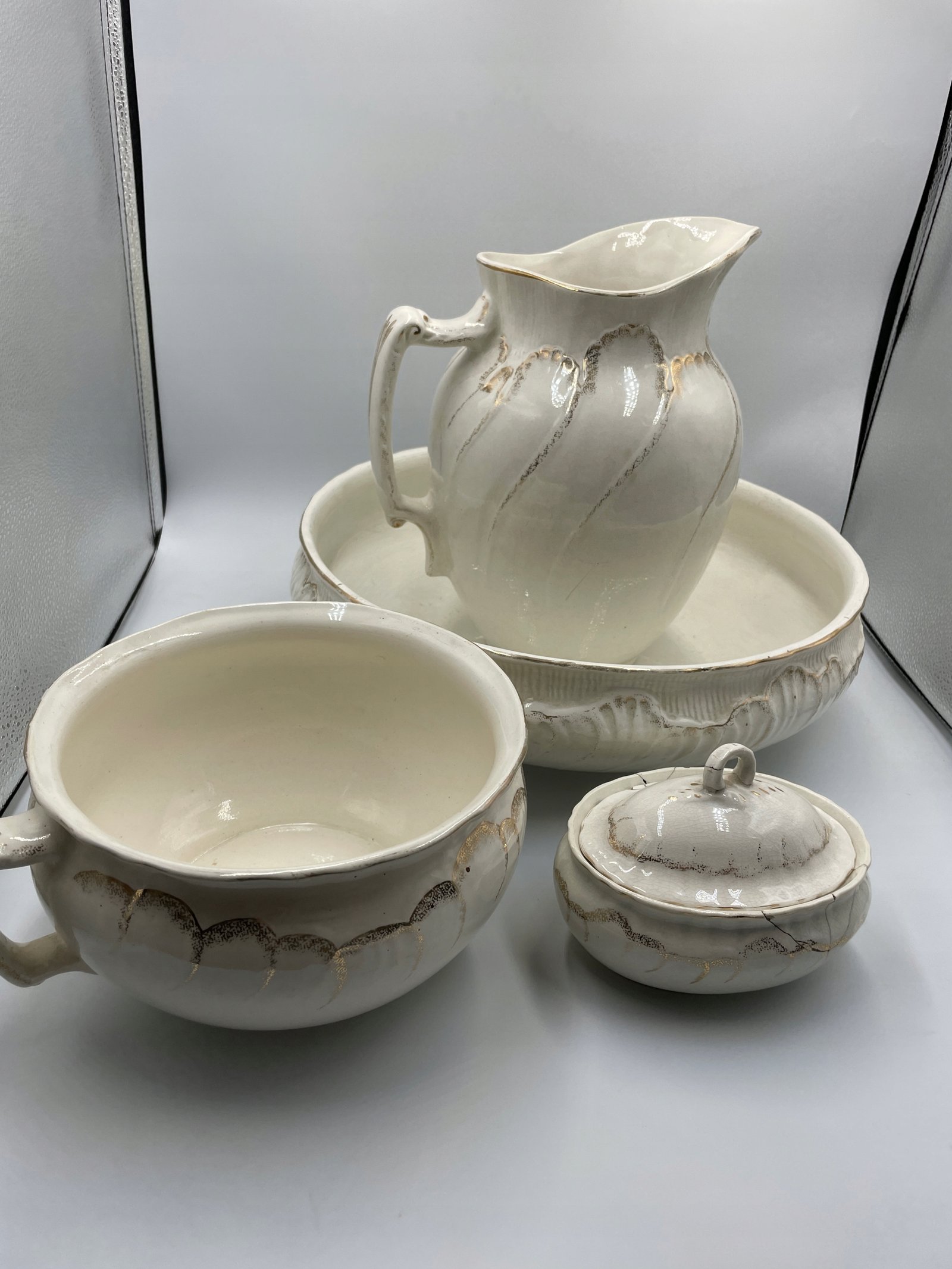 Przedmioty mogą mieć drobne rysy, odpryski, niektóre zabrudzenia, ślady użytkowania i zmiany tekstury spowodowane starzeniem się. Ponieważ stopień zużycia może różnić się w zależności od indywidualnego postrzegania, prosimy o zrozumienie i akceptację cech starych przedmiotów. Będziemy zadowoleni, jeśli będziesz mógł/mogła cieszyć się niepowtarzalnym urokiem starych, dobrych przedmiotów.