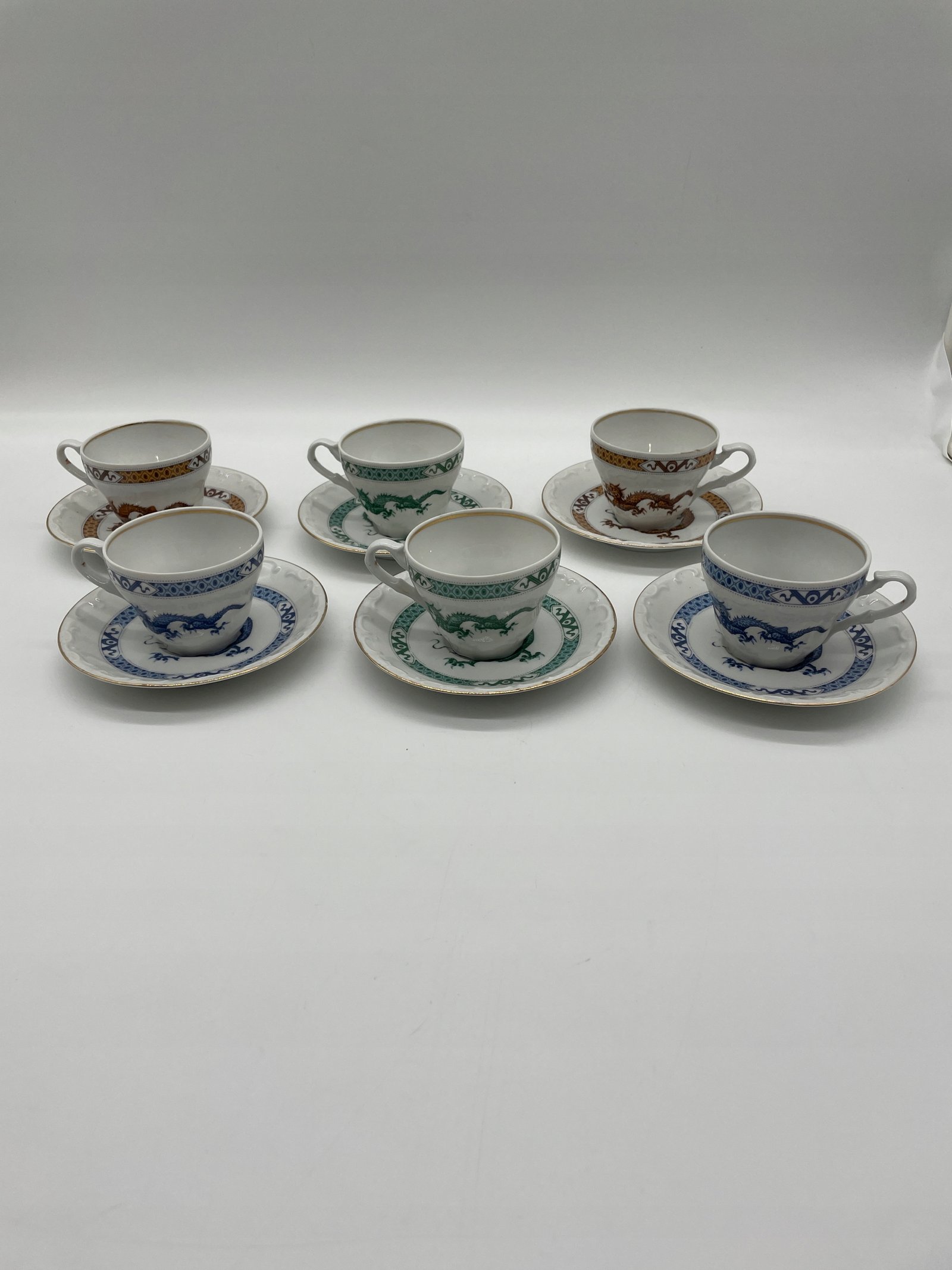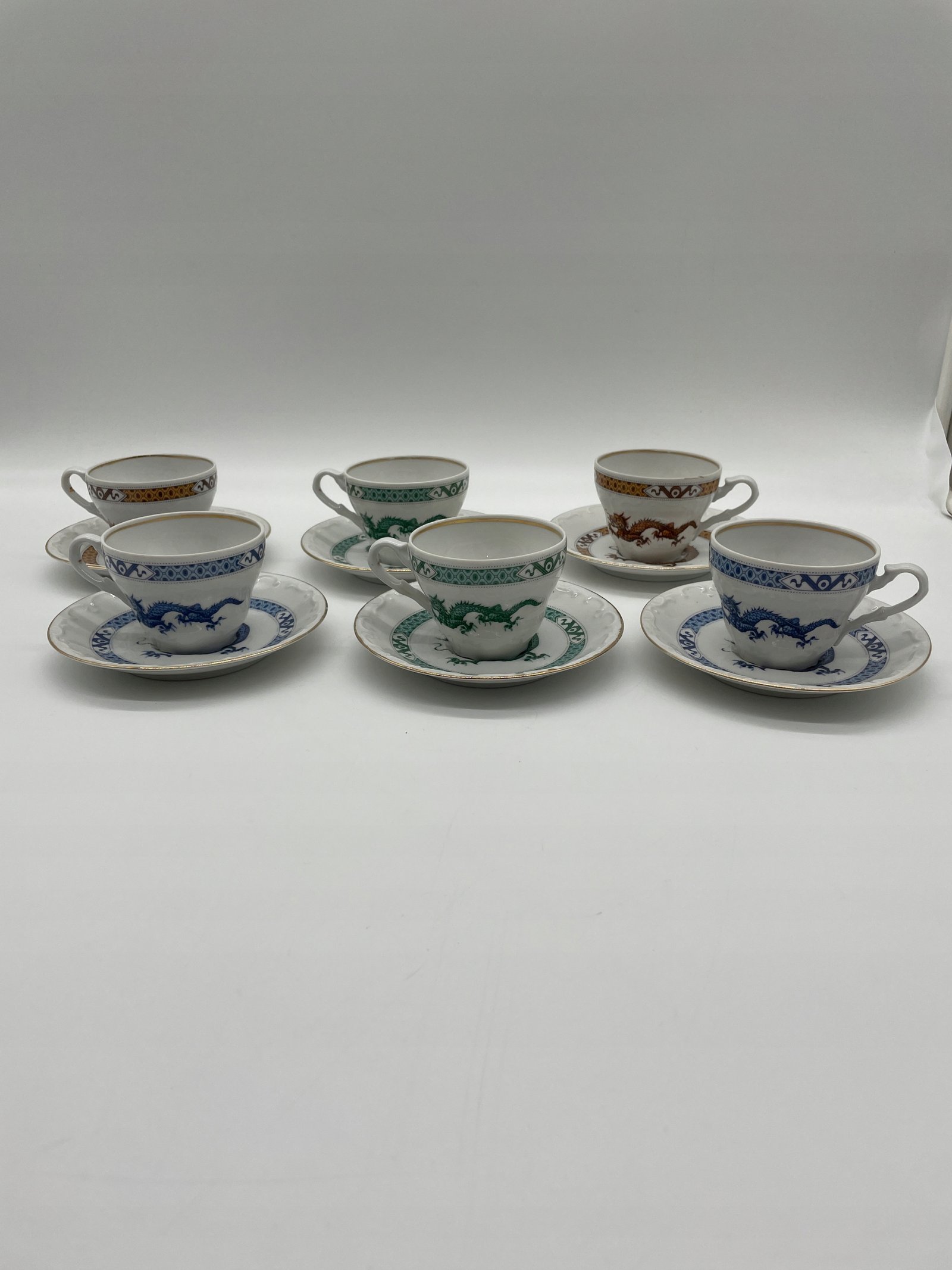 Zestaw filiżanek ze spodkami 6 szt. Niemcy Schwarzenhammer Bavaria styl smok