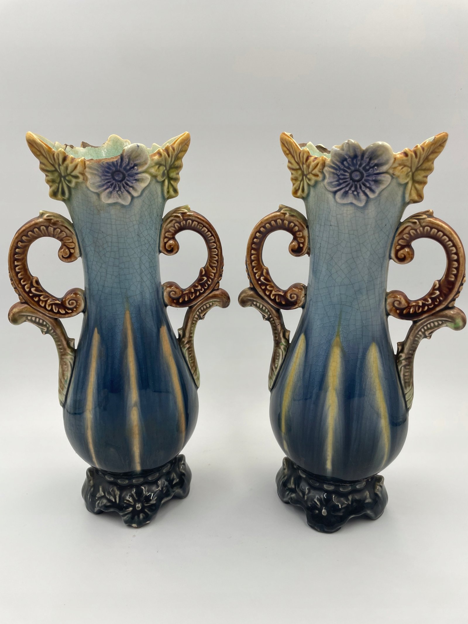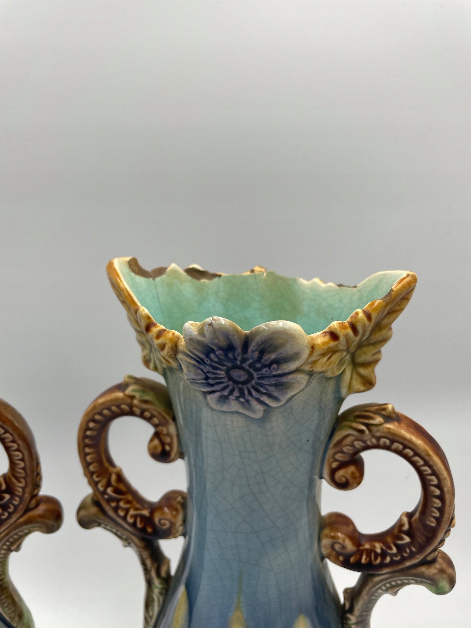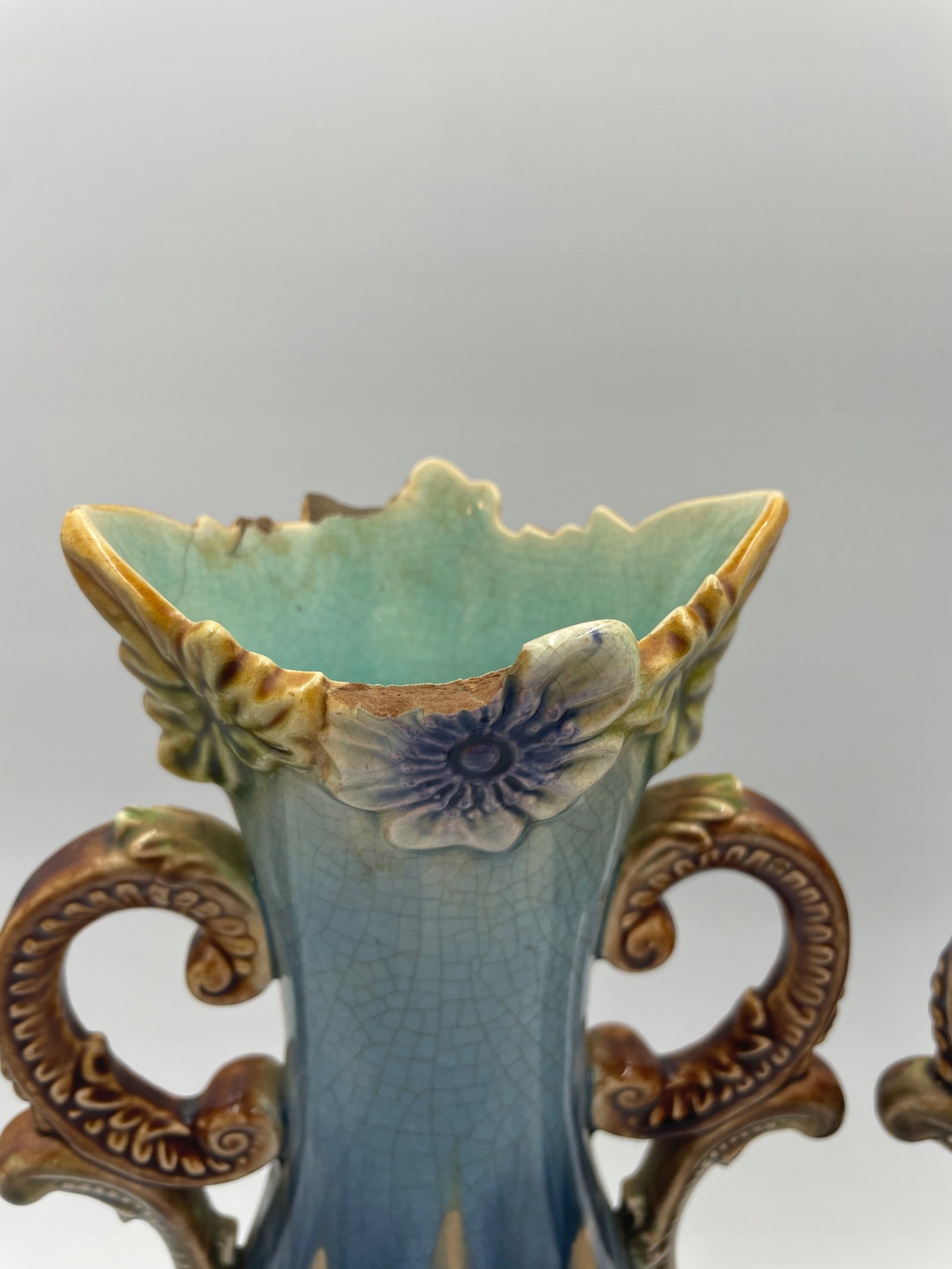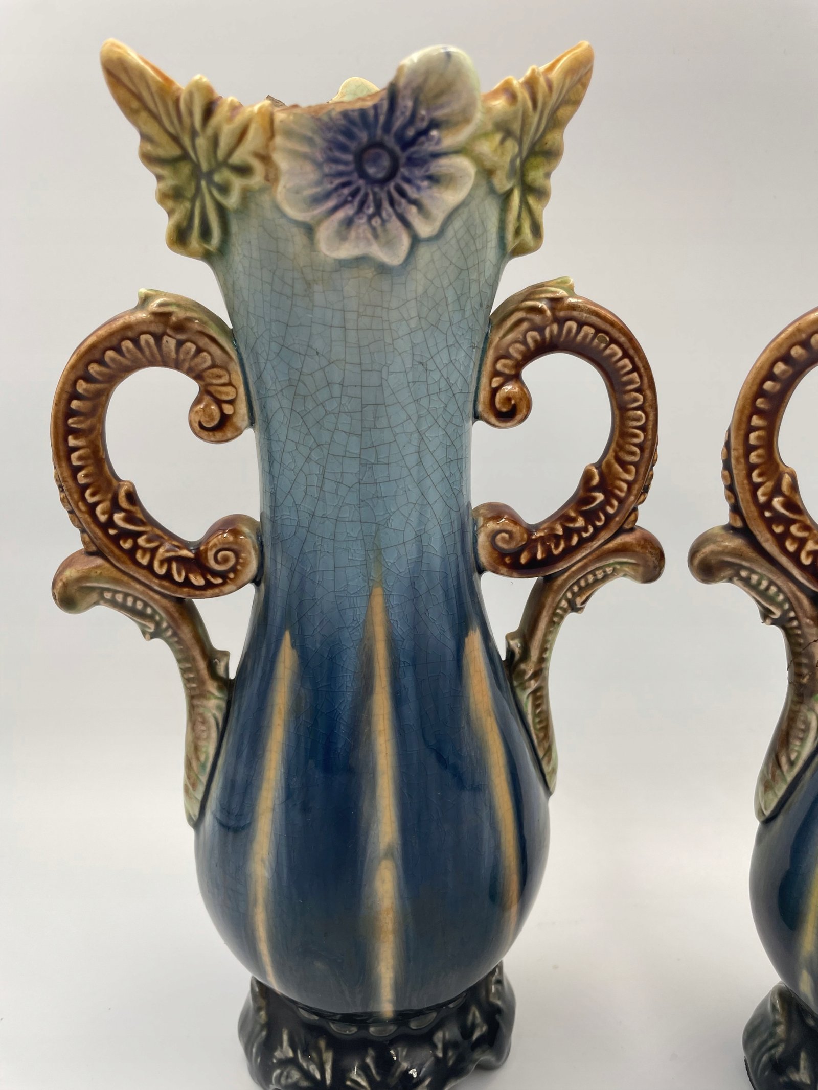 Wazony majolika barbotine para Art Nouveau dekor kwiatowy 809 do renowacji