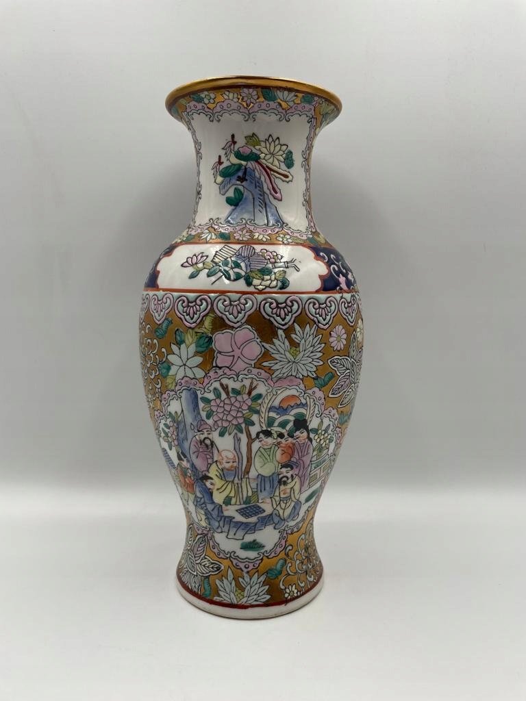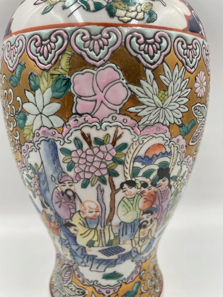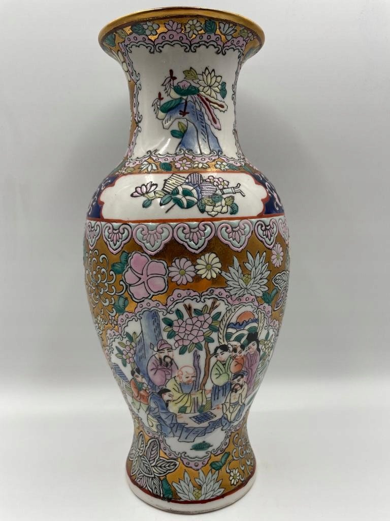 Złoty wazon chiński mężczyźni grający w mahjong 25cm